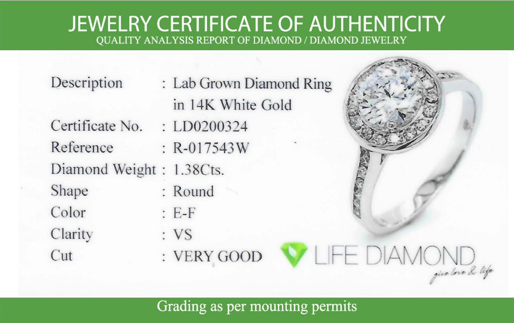 (Life Diamond) Anillo con diamantes de laboratorio en oro blanco 14kt.