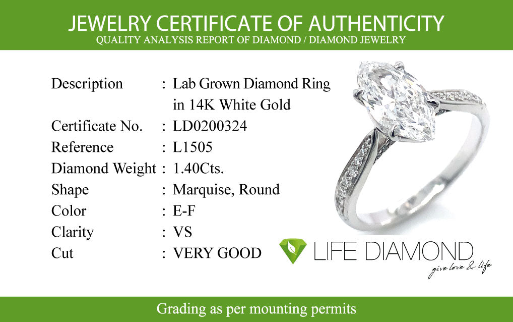(LD) Anillo con diamantes de laboratorio en oro blanco 14kt.