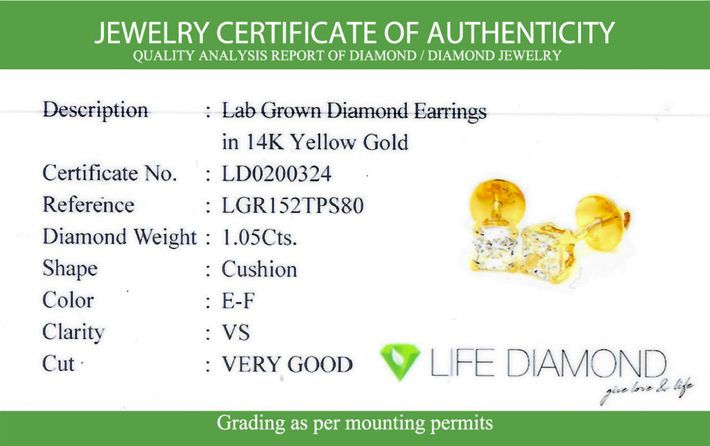 (LD) Aretes con diamantes de laboratorio en oro amarillo 14kt.