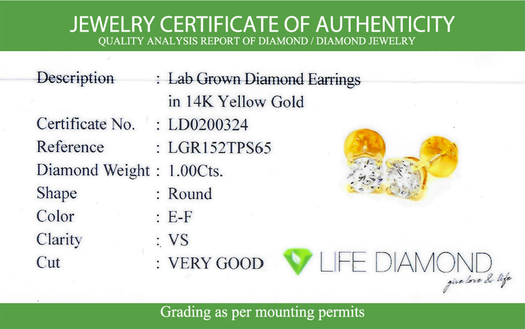 (LD) Aretes con diamantes de laboratorio en oro amarillo 14kt.