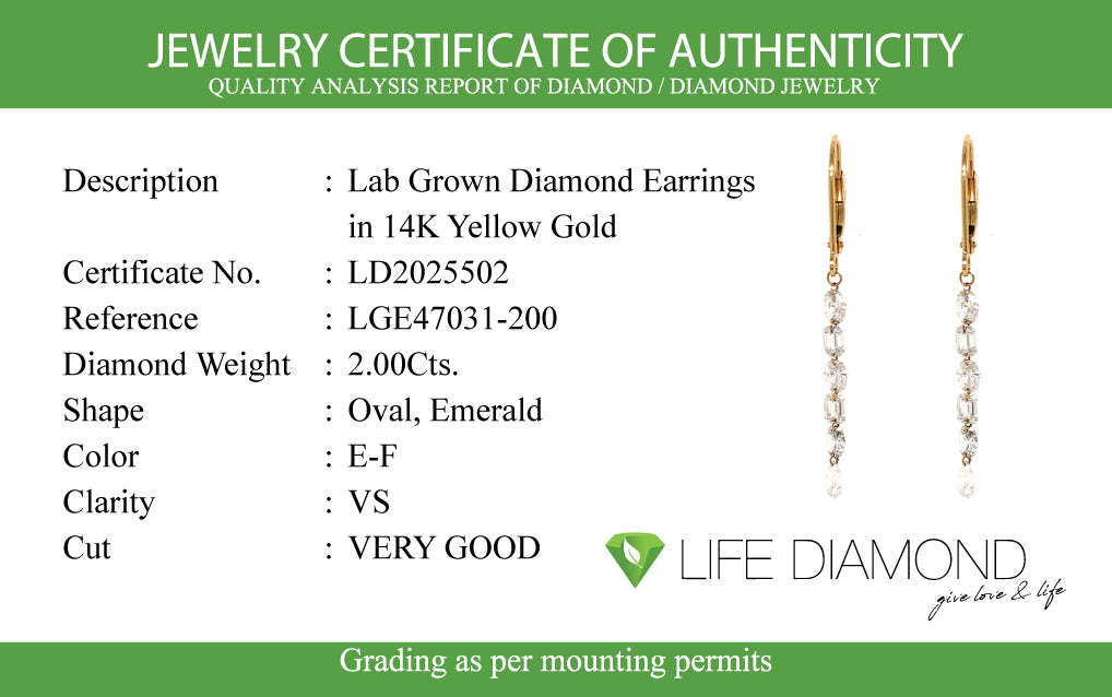 (LD) Aretes con diamantes de laboratorio en oro amarillo 14kt.