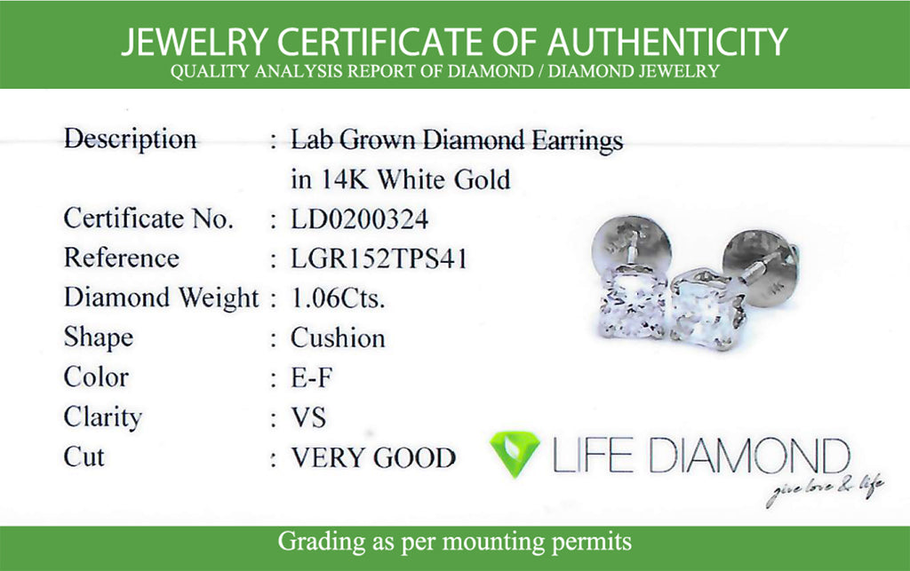 (LD) Aretes con diamantes de laboratorio en oro blanco 14kt.