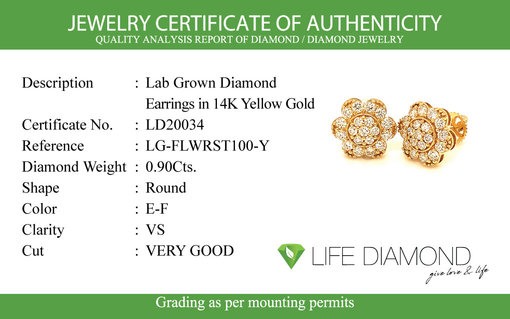 (LD) Aretes con diamantes de laboratorio en oro amarillo 14kt.