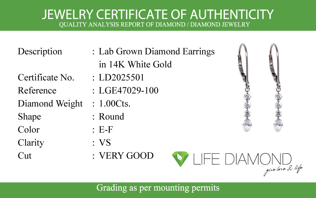 (LD) Aretes con diamantes de laboratorio en oro blanco 14kt.