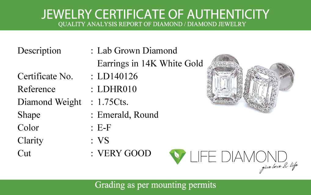 (LD) Aretes con diamantes de laboratorio en oro blanco 14kt.