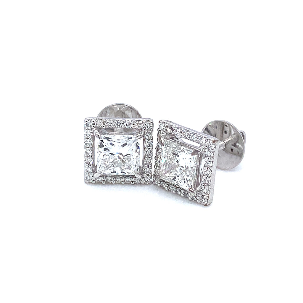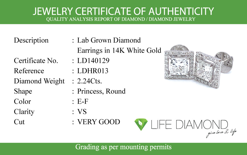 (LD) Aretes con diamantes de laboratorio en oro blanco 14kt.