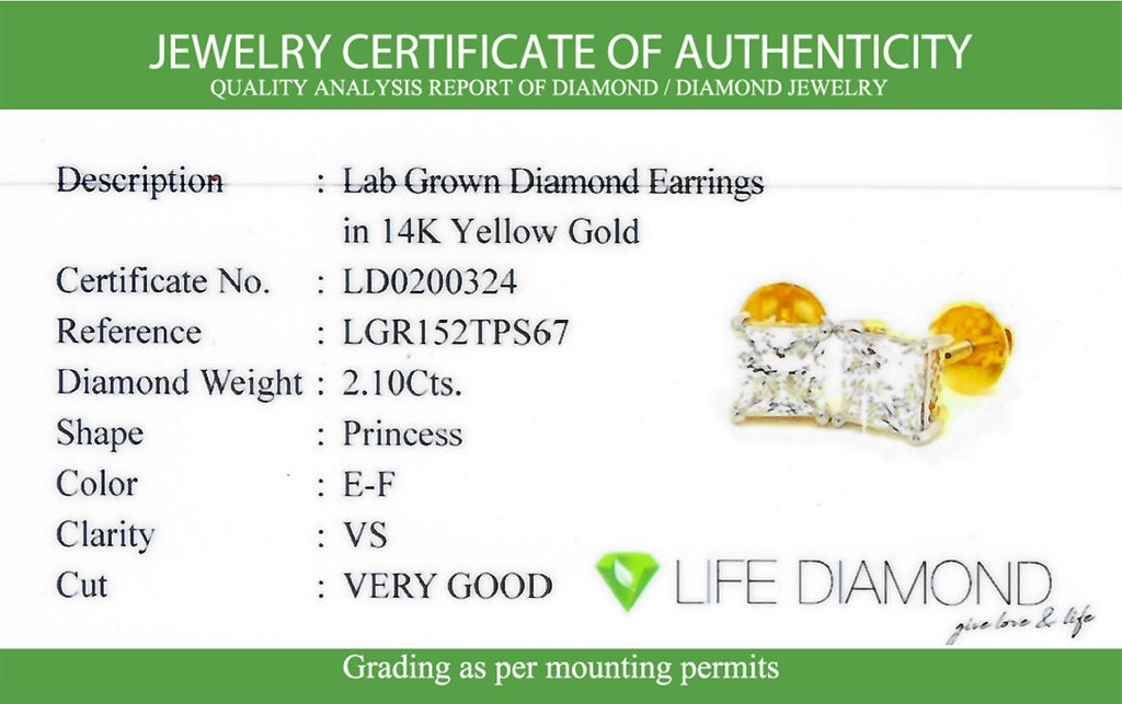 (LD) Aretes con diamantes de laboratorio en oro dos tonos 14kt.