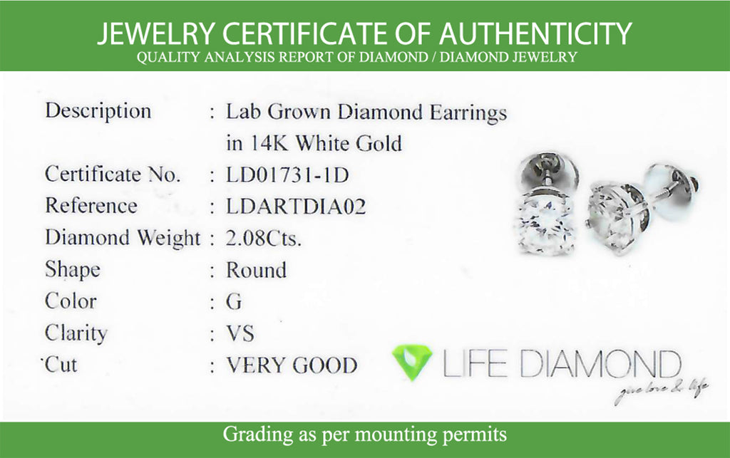 (LD) Aretes con diamantes de laboratorio en oro blanco 14kt.