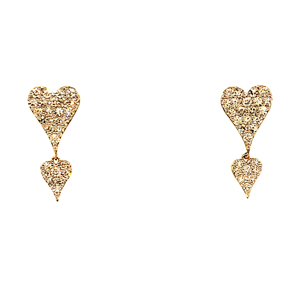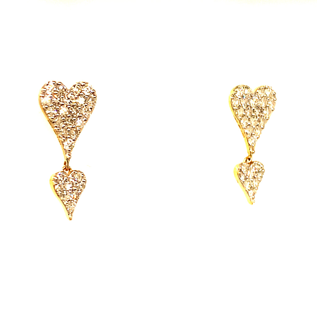(LD) Aretes (corazón) con diamantes de laboratorio en oro amarillo 10kt.
