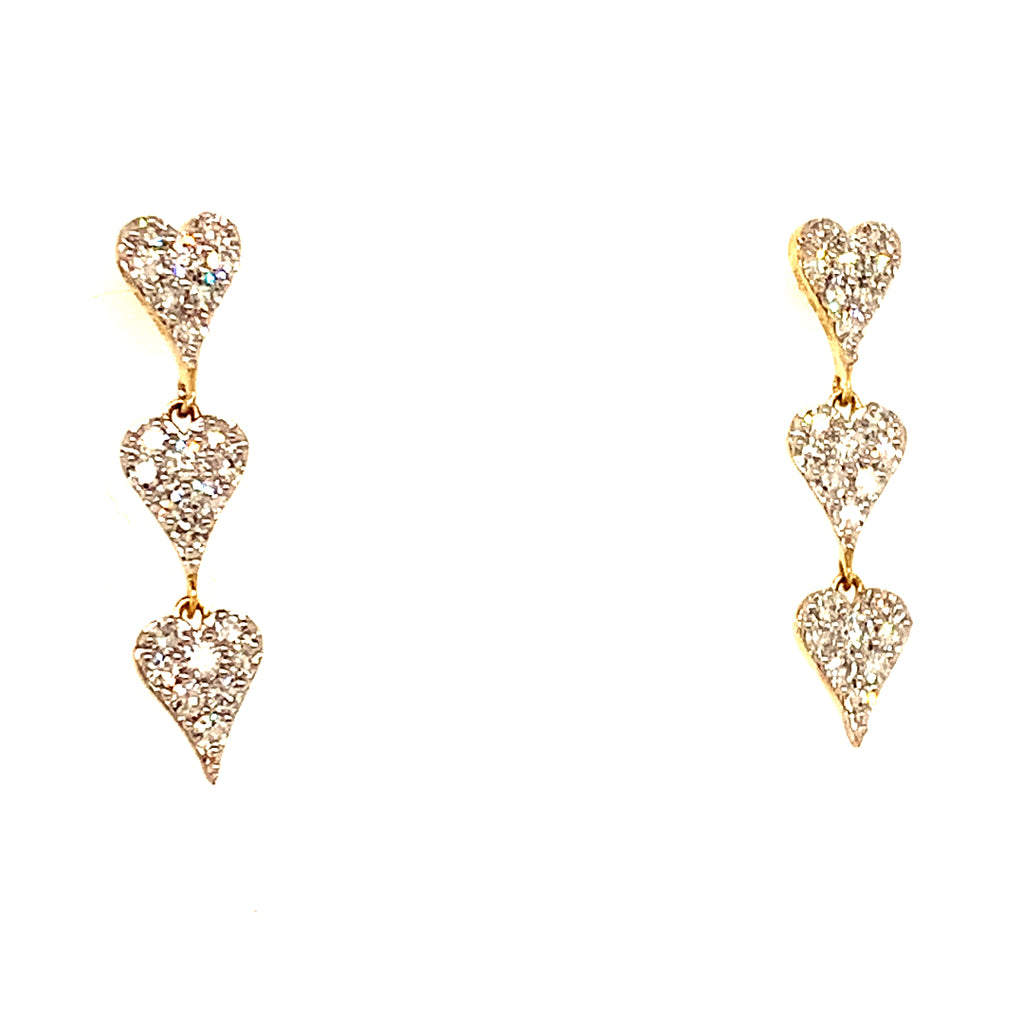 (LD) Aretes (corazones) con diamantes de laboratorio en oro amarillo 10kt.