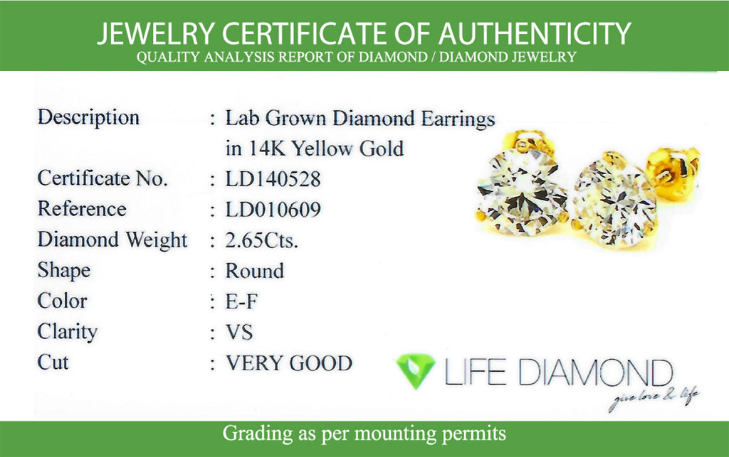 (LD) Aretes de diamantes de laboratorio en oro amarillo 14kt.