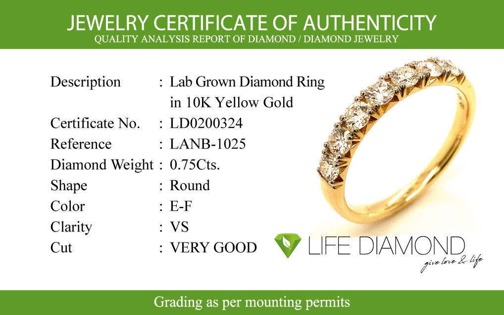 (LD) Banda con diamantes de laboratorio en oro amarillo 10k. D-0.75Cts.