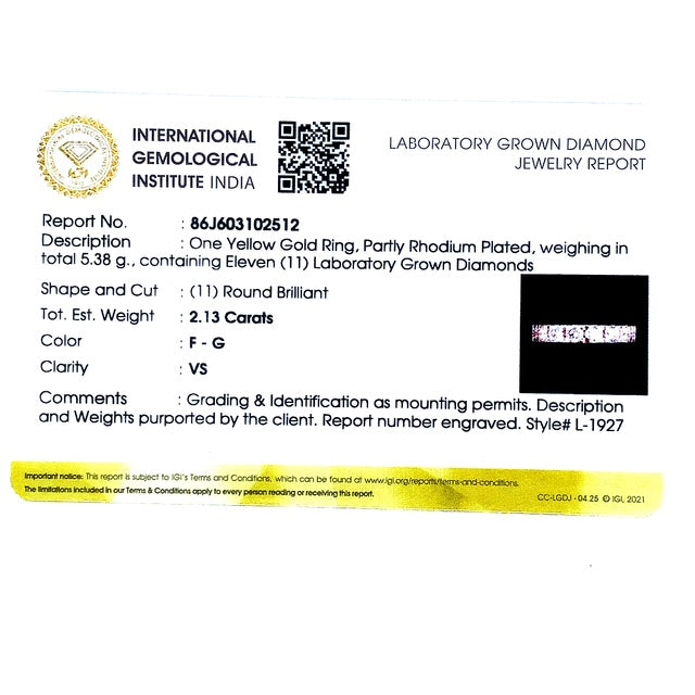 (LD) Banda con diamantes de laboratorio en oro amarillo 14k.
