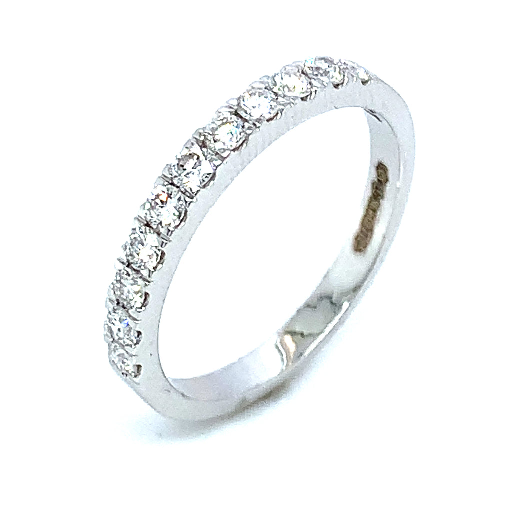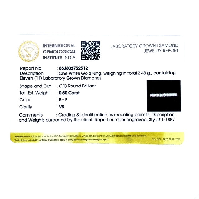 (LD) Banda con diamantes de laboratorio en oro blanco 14k.