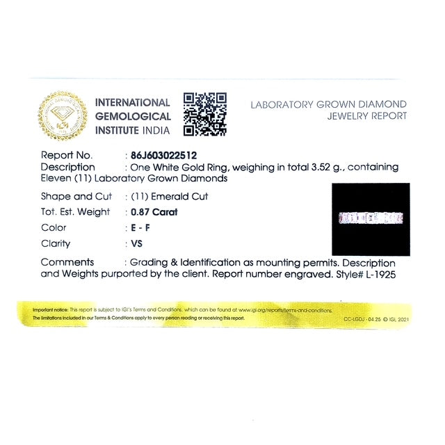 (LD) Banda con diamantes de laboratorio en oro blanco 14k.