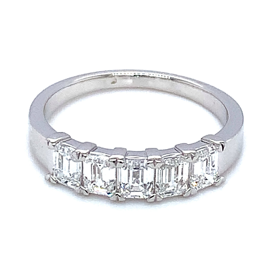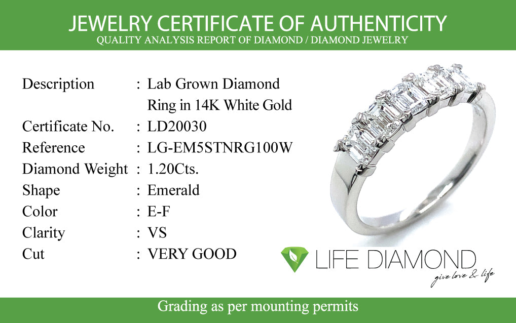 (LD) Banda con diamantes de laboratorio en oro blanco 14k.