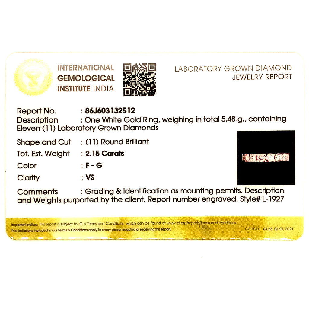 (LD) Banda con diamantes de laboratorio en oro blanco 14k.