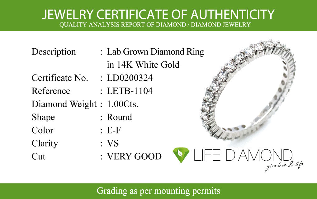 (LD) Banda con diamantes de laboratorio en oro blanco 14kt. D-1.00CTS.