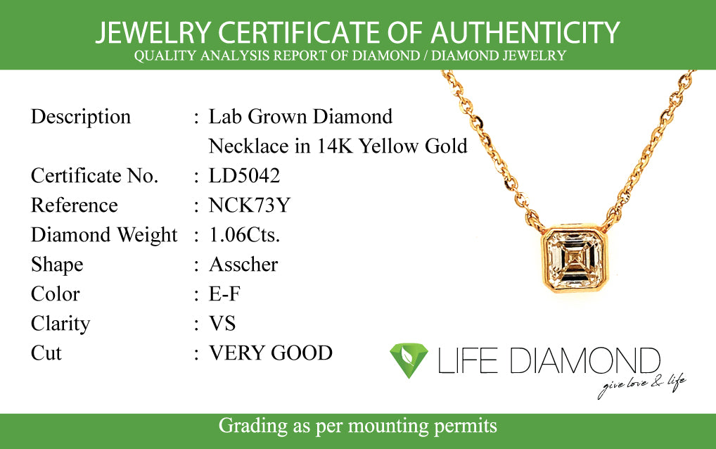 (LD) Collar con diamante de laboratorio en oro amarillo 14kt. 42-43CM D-1.06Cts.