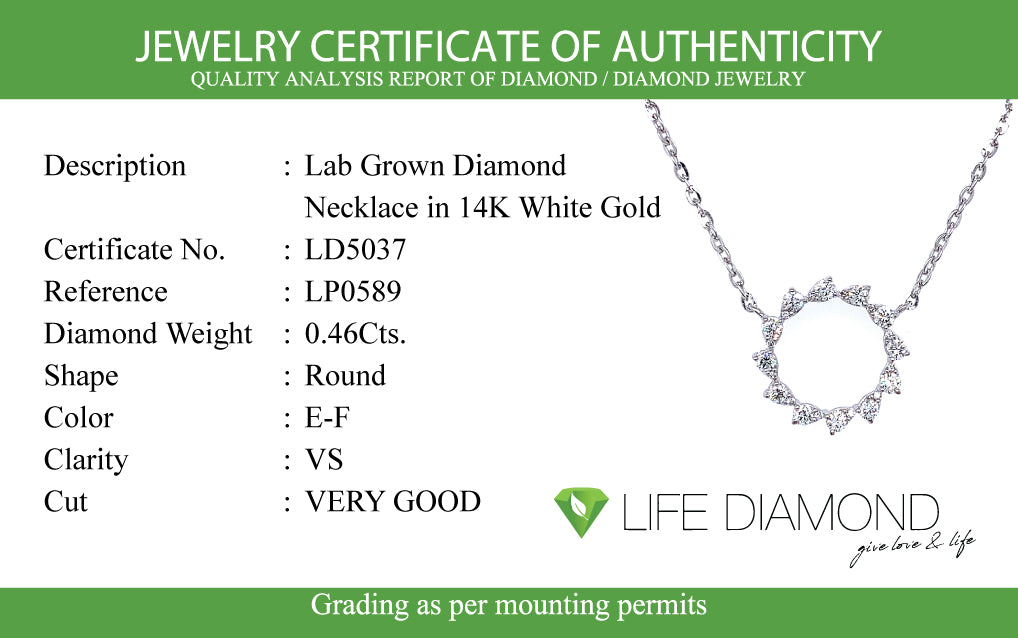 (LD) Collar con diamante de laboratorio en oro blanco 14kt. 41-42CM D-0.46Cts.