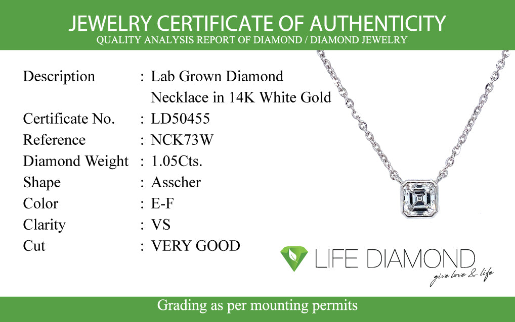 (LD) Collar con diamante de laboratorio en oro blanco 14kt. 42-43CM D-1.05Cts.