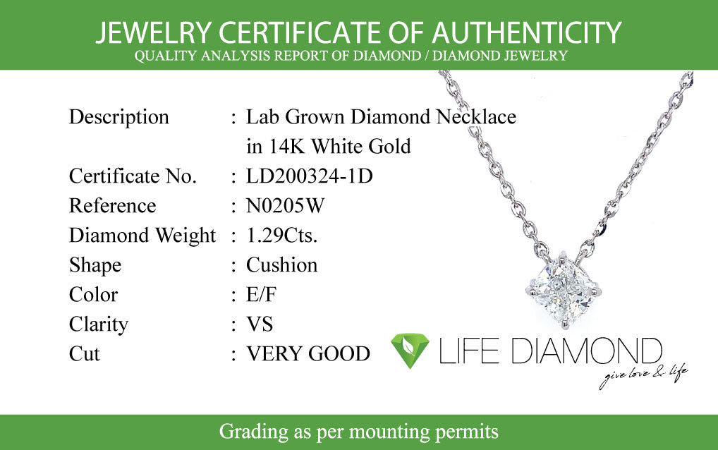 (LD) Collar con diamante de laboratorio en oro blanco 14kt. 42cm
