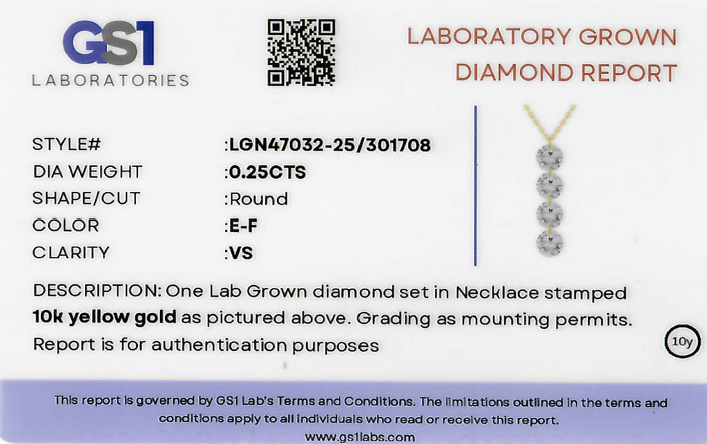 (LD) Collar con diamantes de laboratorio en oro amarillo 10kt.45cm