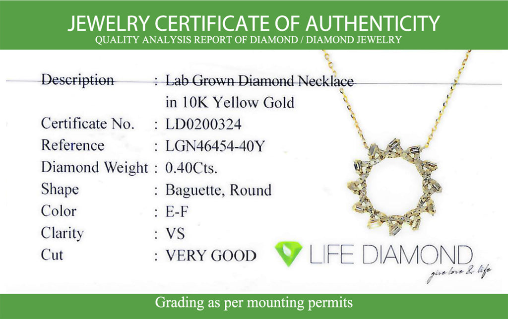 (LD) Collar con diamantes de laboratorio en oro amarillo 10kt. 45cm