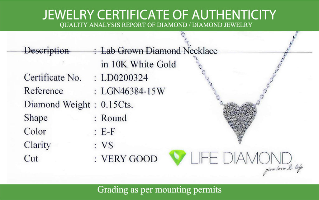 (LD) Collar (corazón) con diamantes de laboratorio en oro blanco 10kt. 45cm