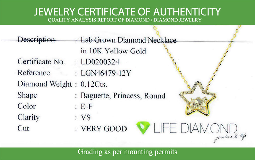 (LD) Collar (estrella) con diamantes de laboratorio en oro blanco 10kt. 45cm