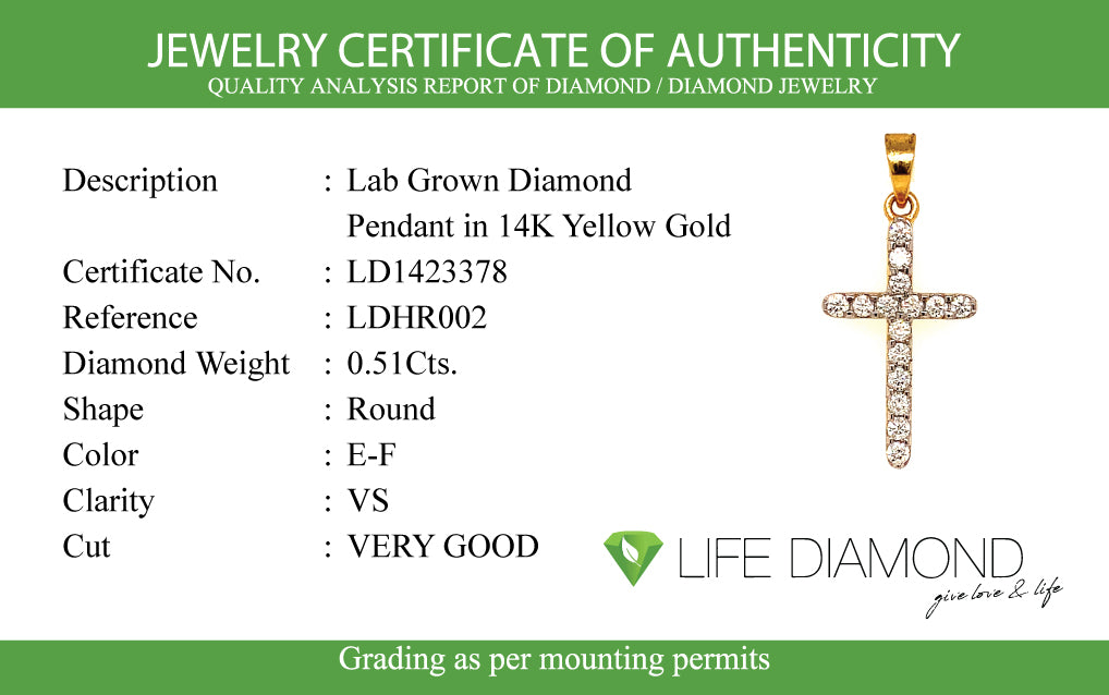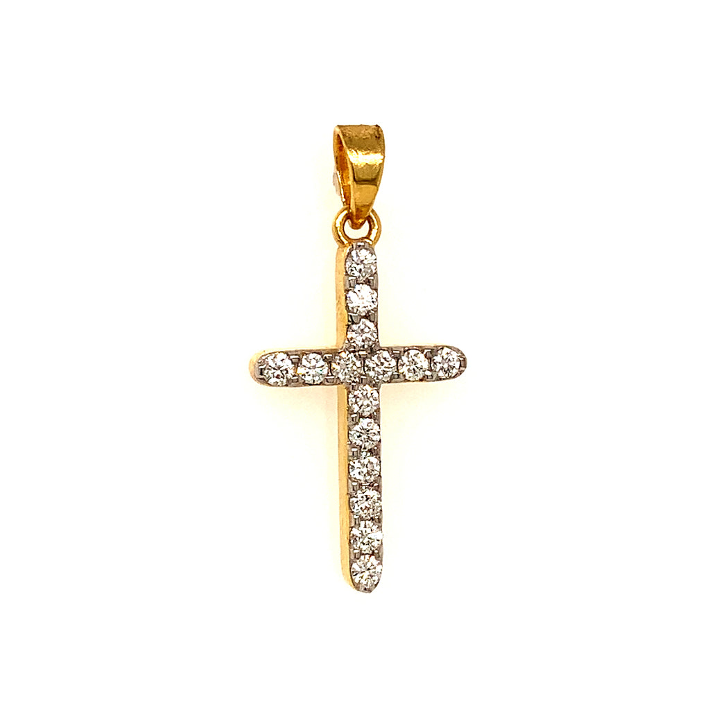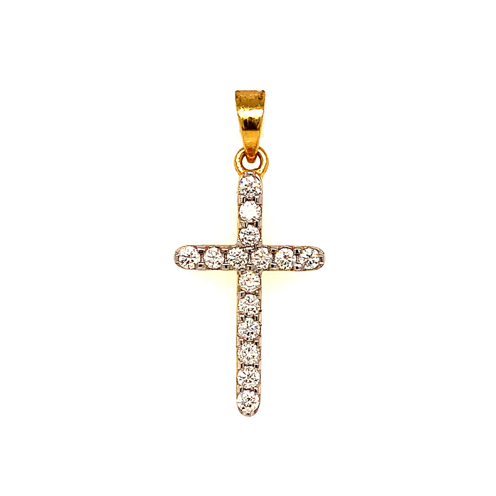 (LD) Dije (cruz) con diamantes en oro amarillo 14kt.