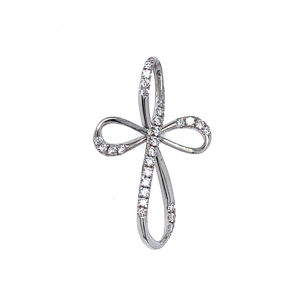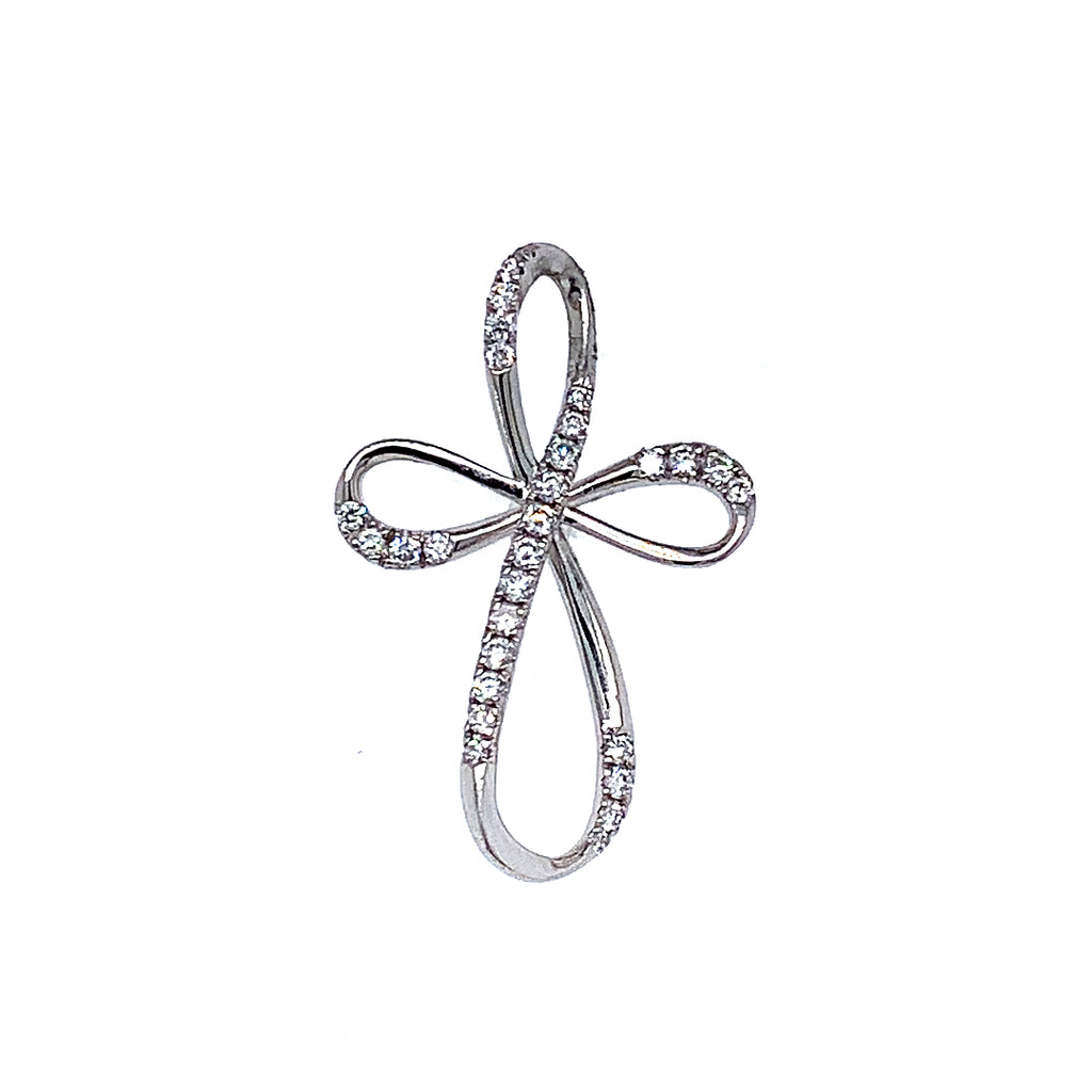 (LD) Dije (cruz) con diamantes en oro blanco 14kt.