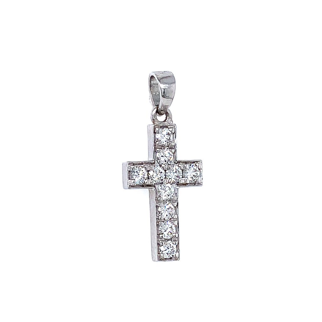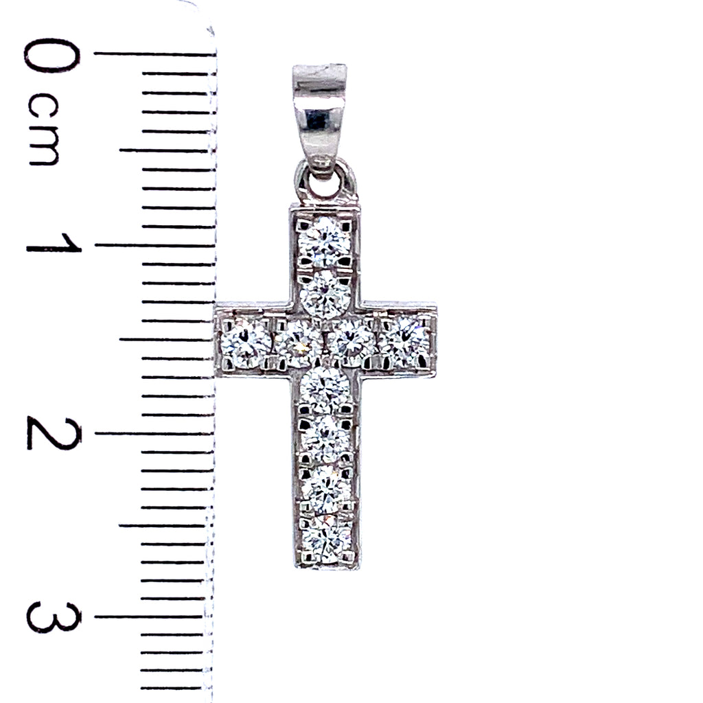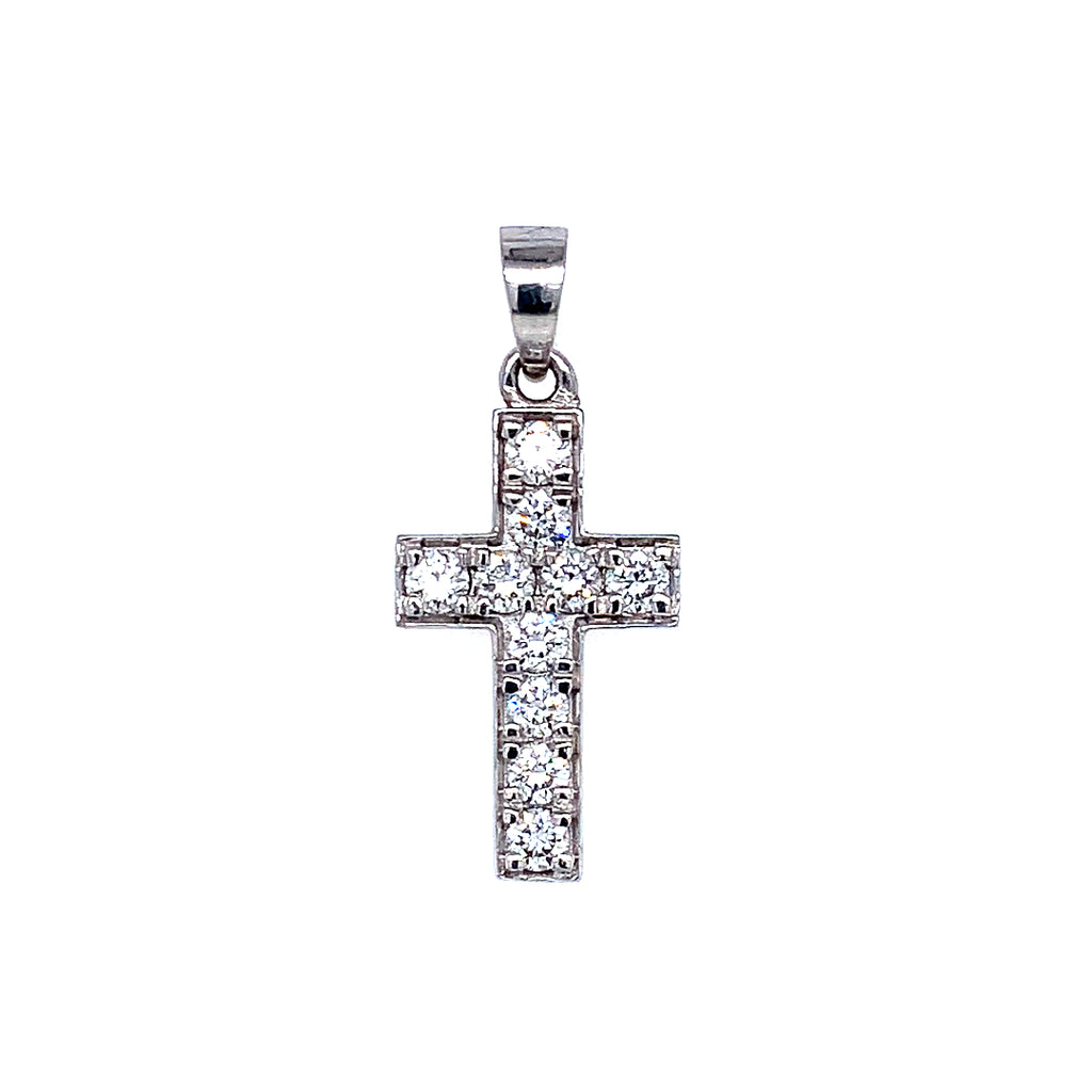 (LD) Dije (cruz) con diamantes en oro blanco 14kt.