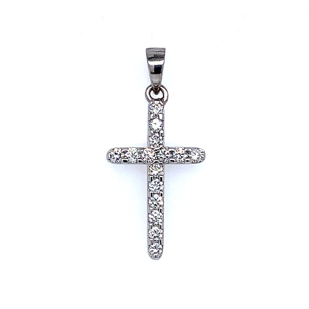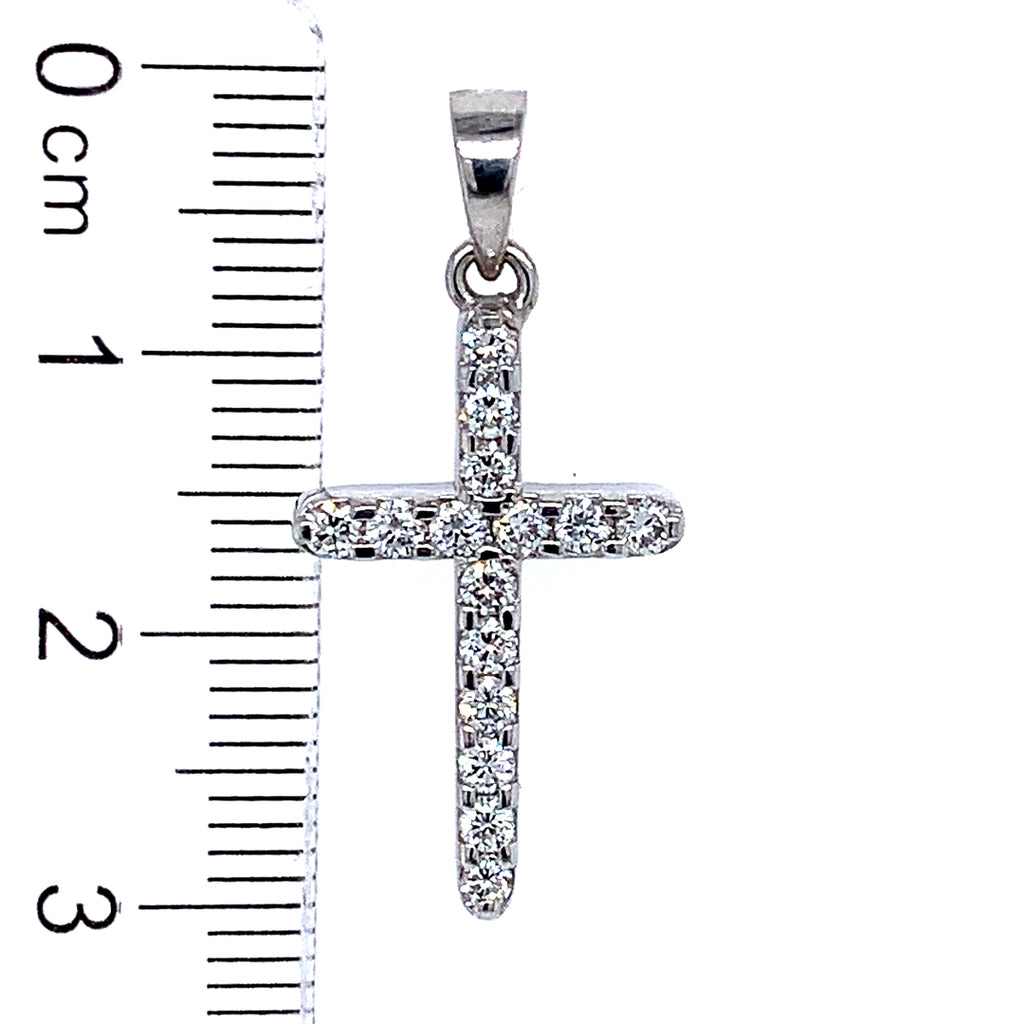 (LD) Dije (cruz) con diamantes en oro blanco 14kt.