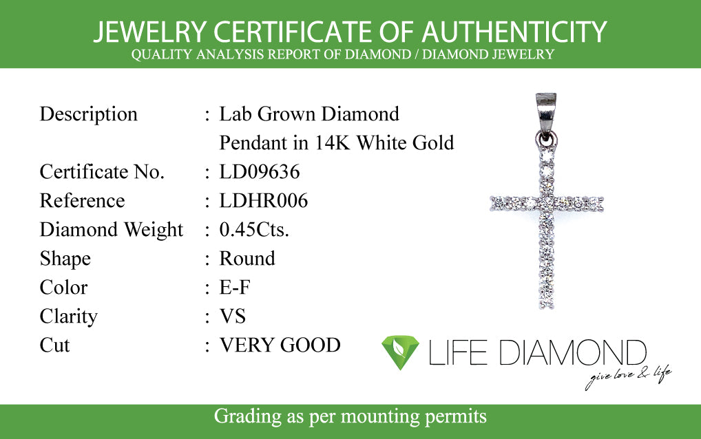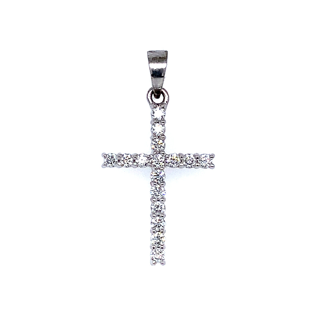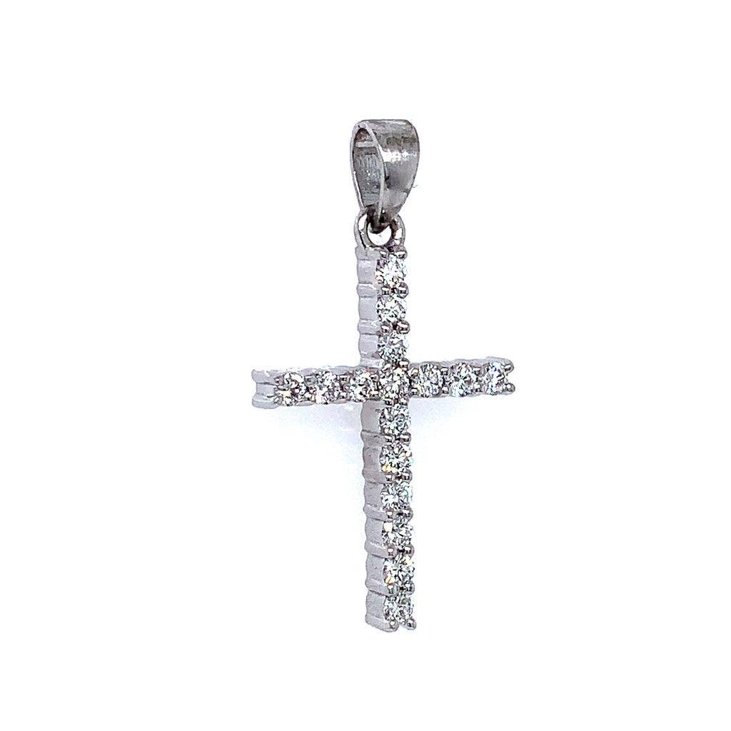 (LD) Dije (cruz) con diamantes en oro blanco 14kt.