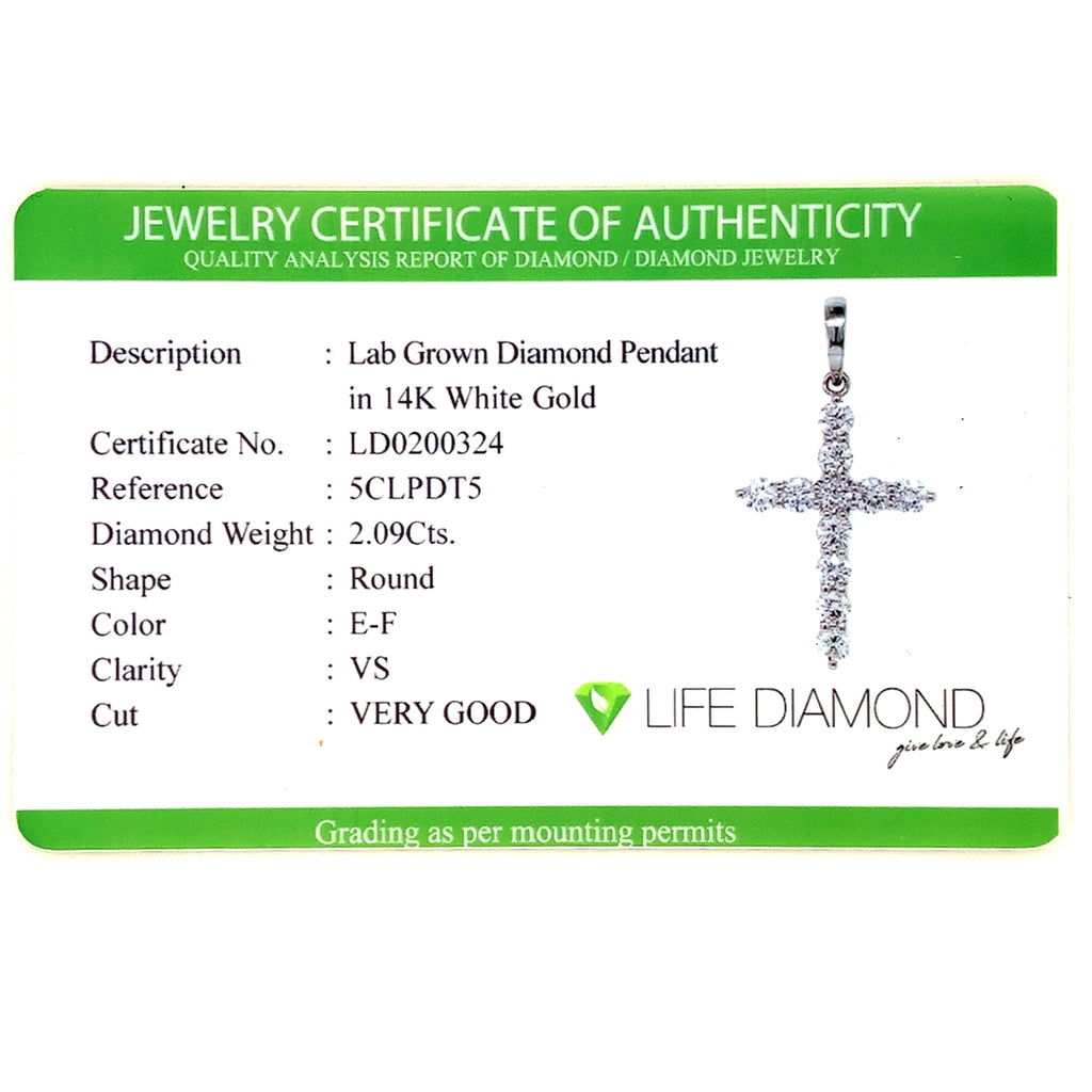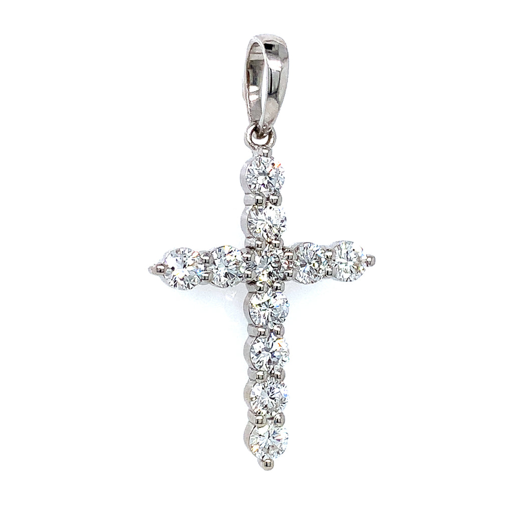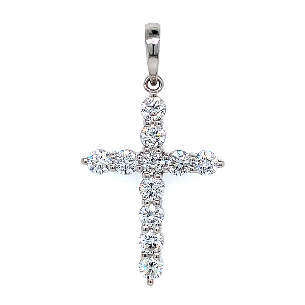 (LD) Dije (cruz) con diamantes en oro blanco 14kt.