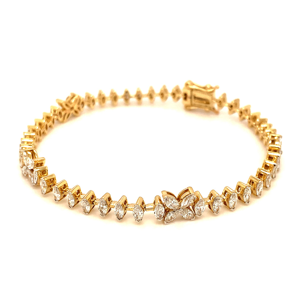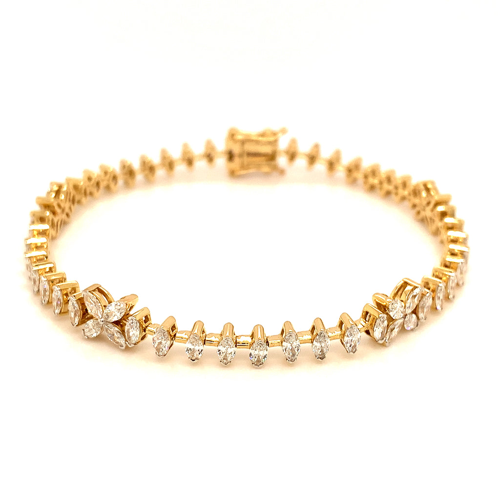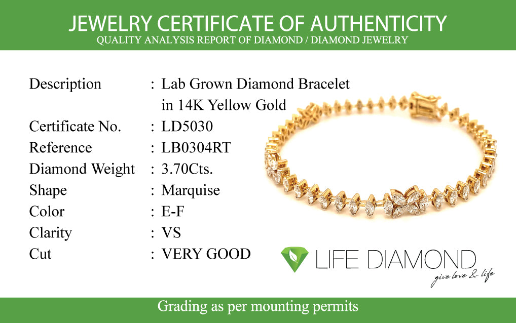 (LD) Pulsera (tennis) con diamantes de laboratorio en oro amarillo 14kt. D-3.70CT