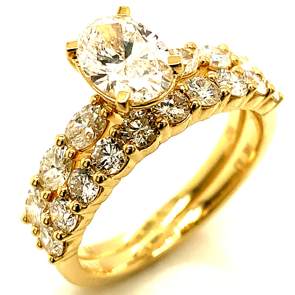 (LD) Set de anillos con diamantes de laboratorio en oro amarillo 14kt.
