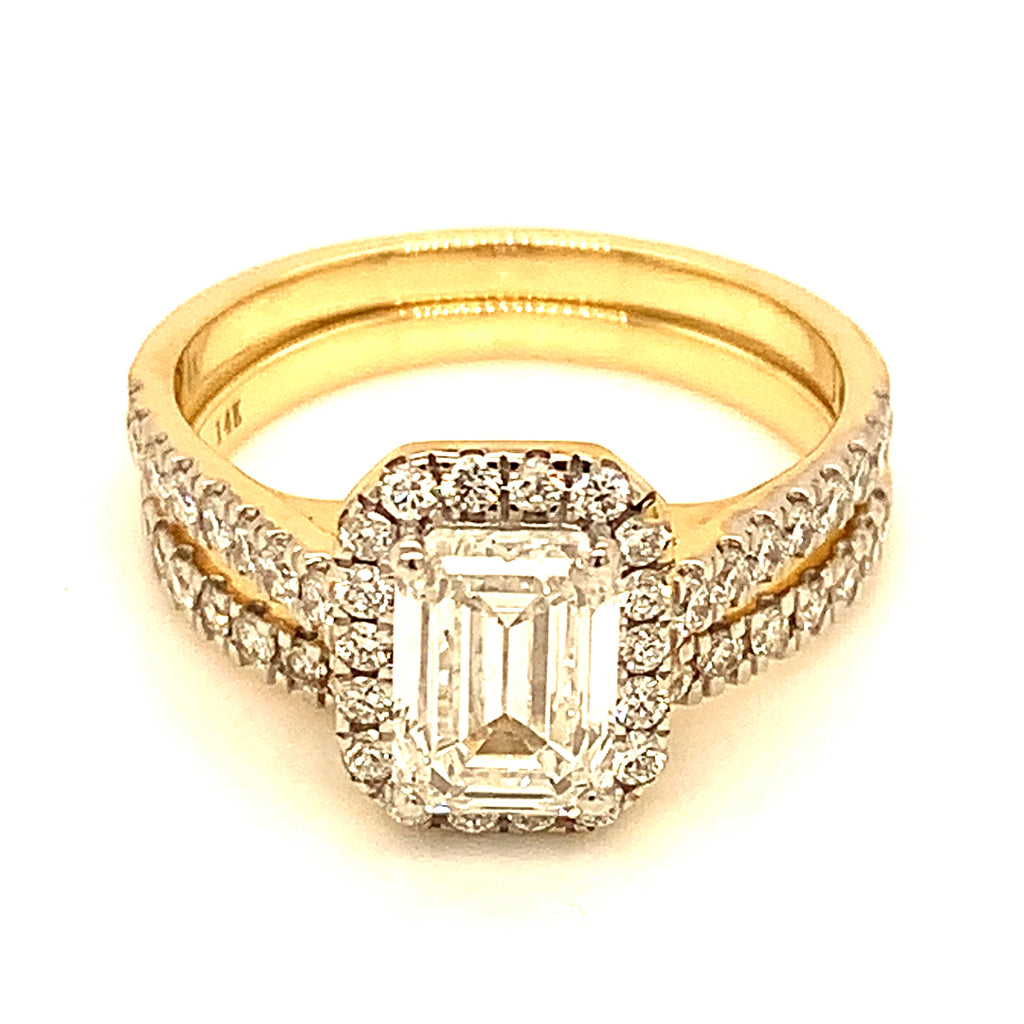 (LD) Set de anillos con diamantes de laboratorio en oro amarillo 14kt.