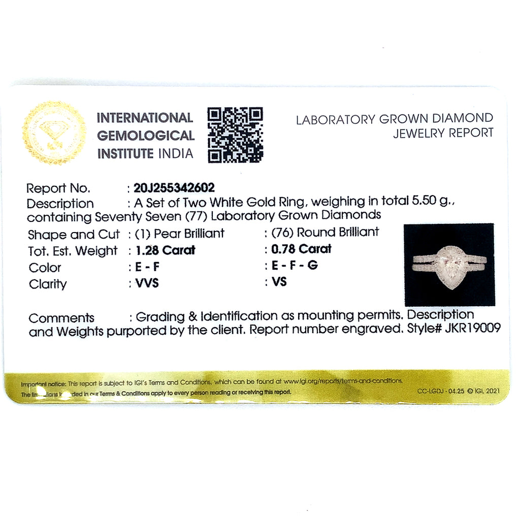 (LD) Set de anillos con diamantes de laboratorio en oro blanco 14kt.