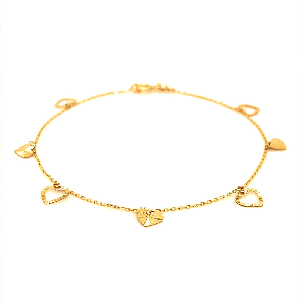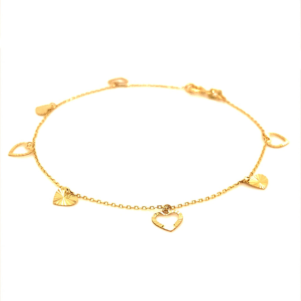 Pulsera (corazones) con oro amarillo 10k. 19cm