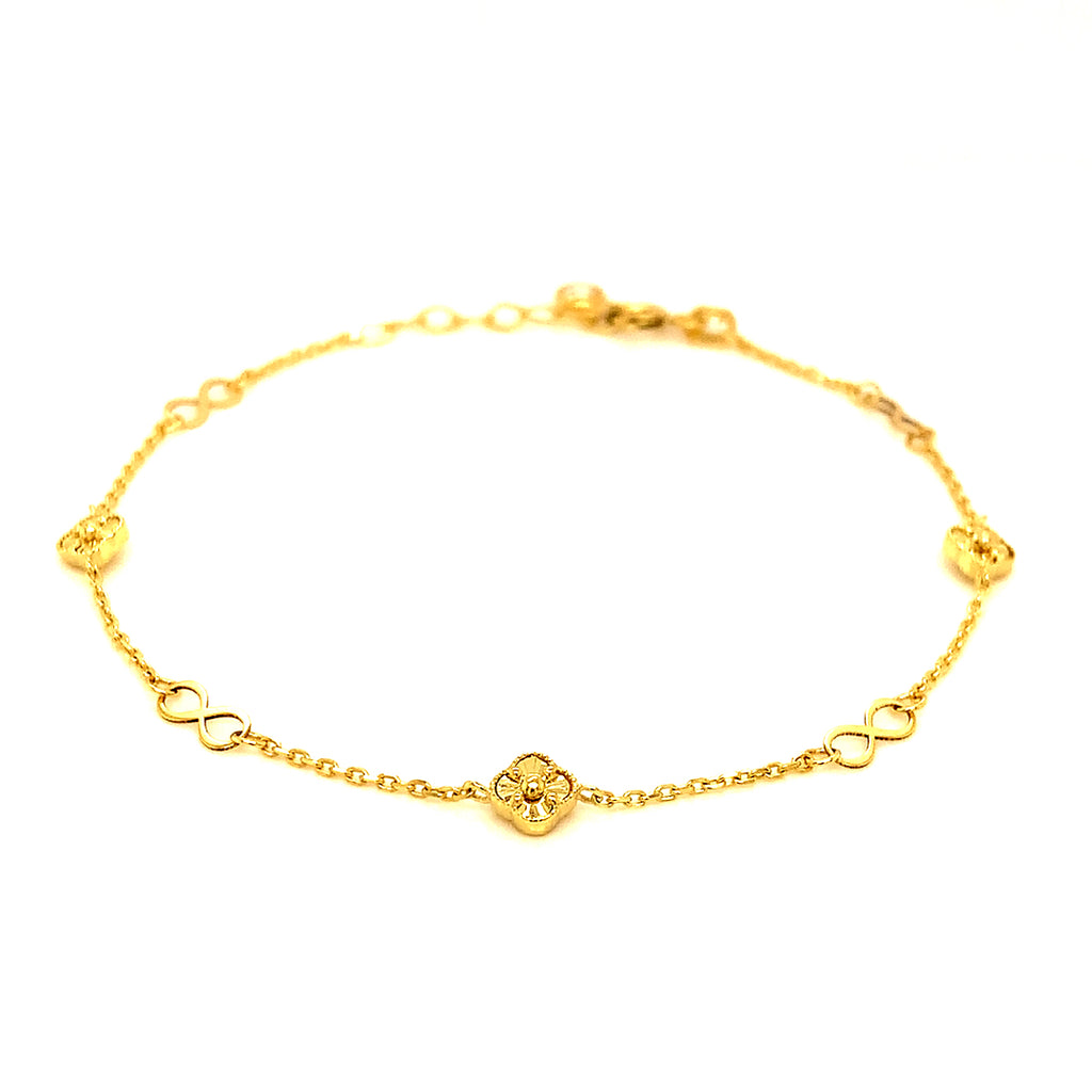Pulsera (infinito y trebol) en oro amarillo 10kt. 17.5/20cm