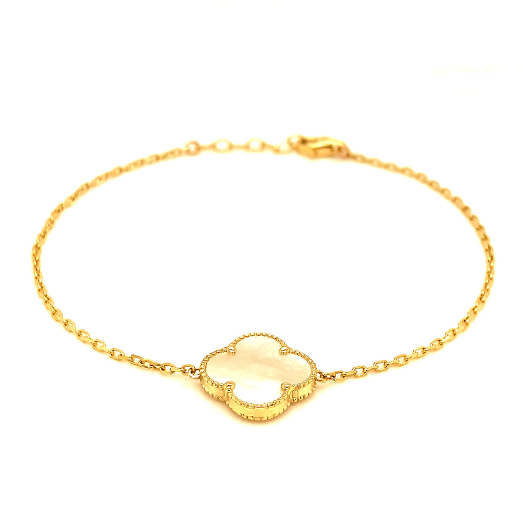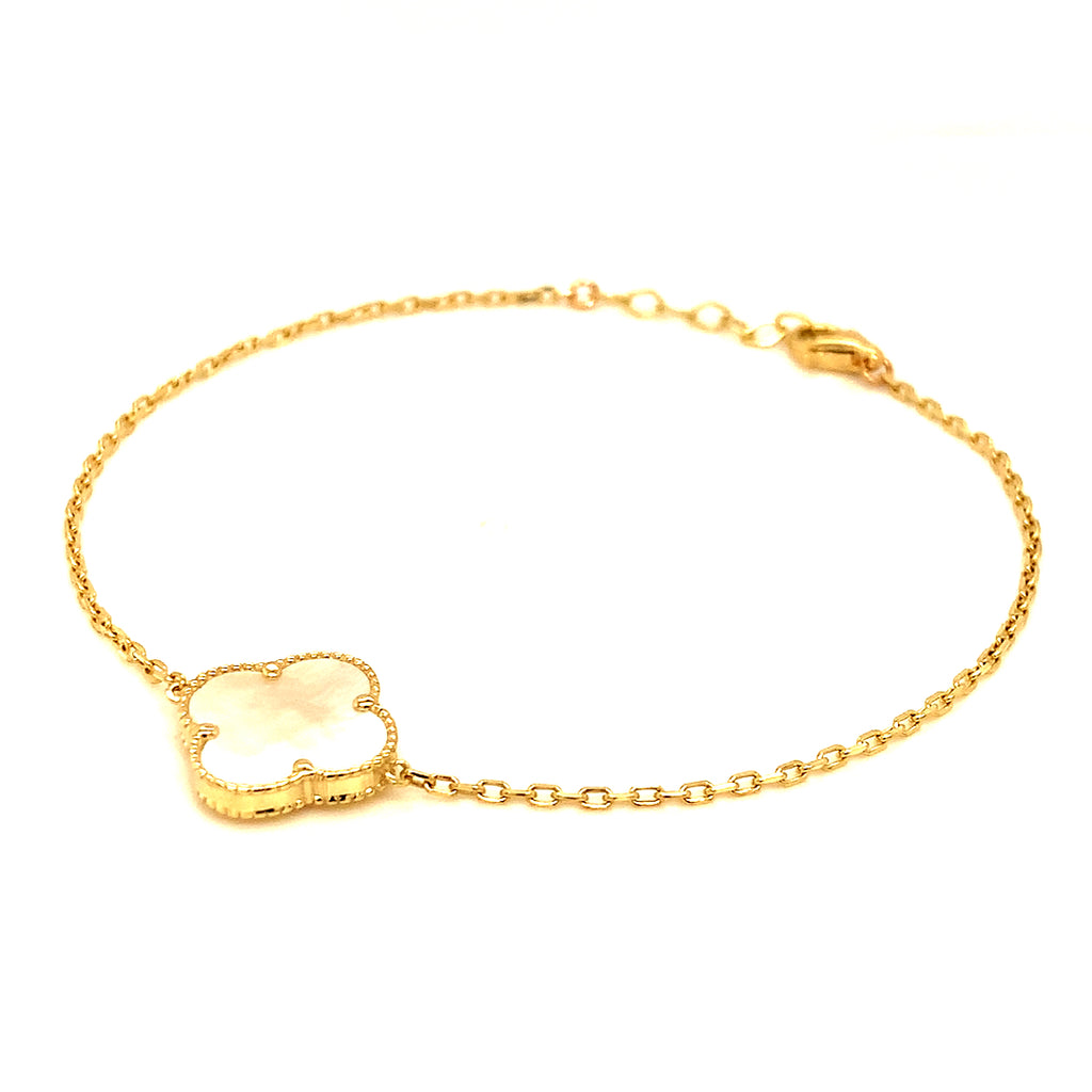 Pulsera (trébol nacar blanco) en oro amarillo 10kt. 18/19.5cm
