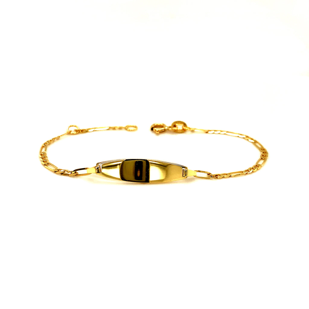 Pulsera cartier para bebés con placa grabable en oro amarillo 18k. 15cm