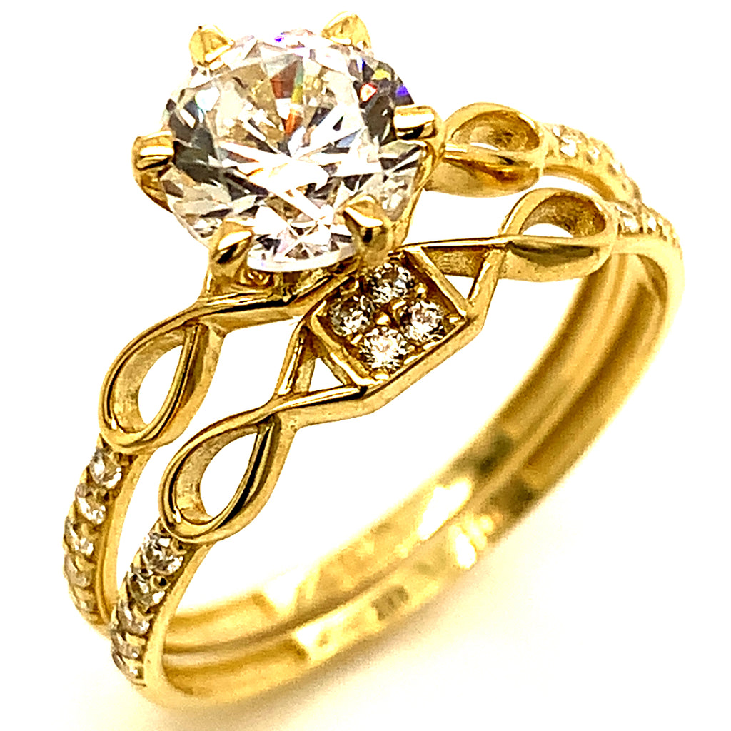 Set de anillos de matrimonio con circones en oro amarillo 10kt
