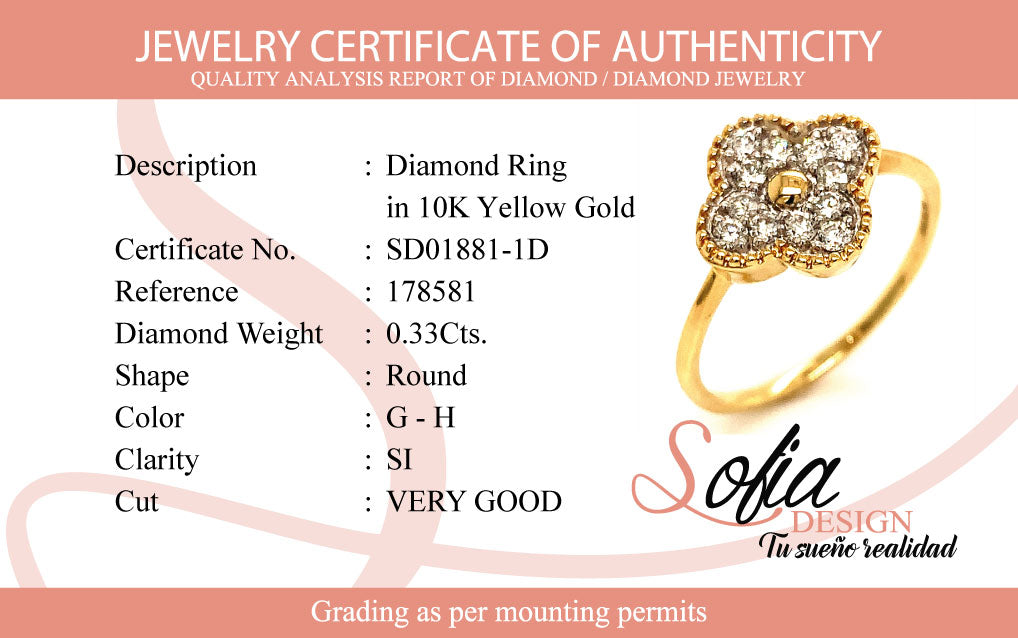 (SOFIA) Anillo con diamantes en oro amarillo 10k