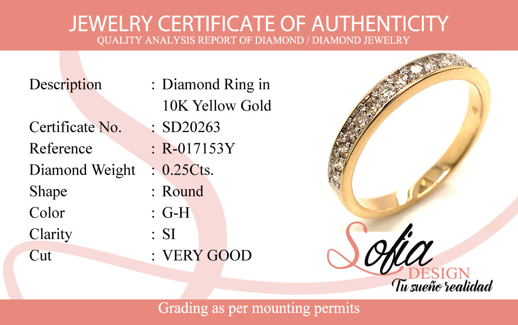 (SOFIA) Banda con diamantes en oro amarillo 10k