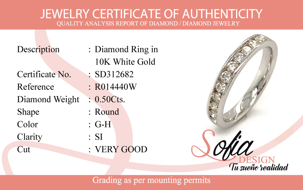 (SOFIA) Banda con diamantes en oro blanco 10k