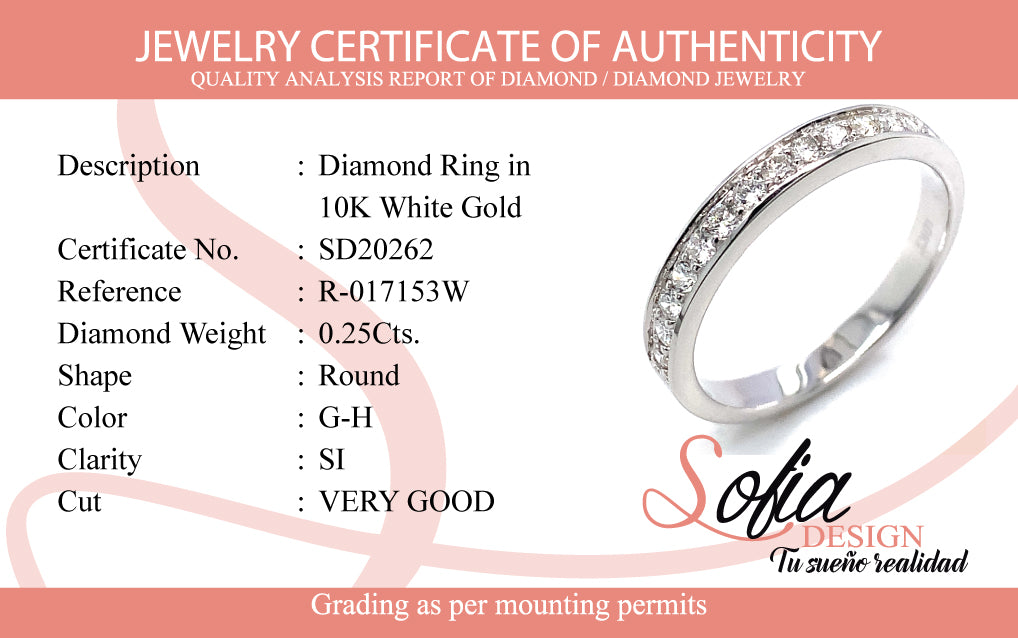 (SOFIA) Banda con diamantes en oro blanco 10k
