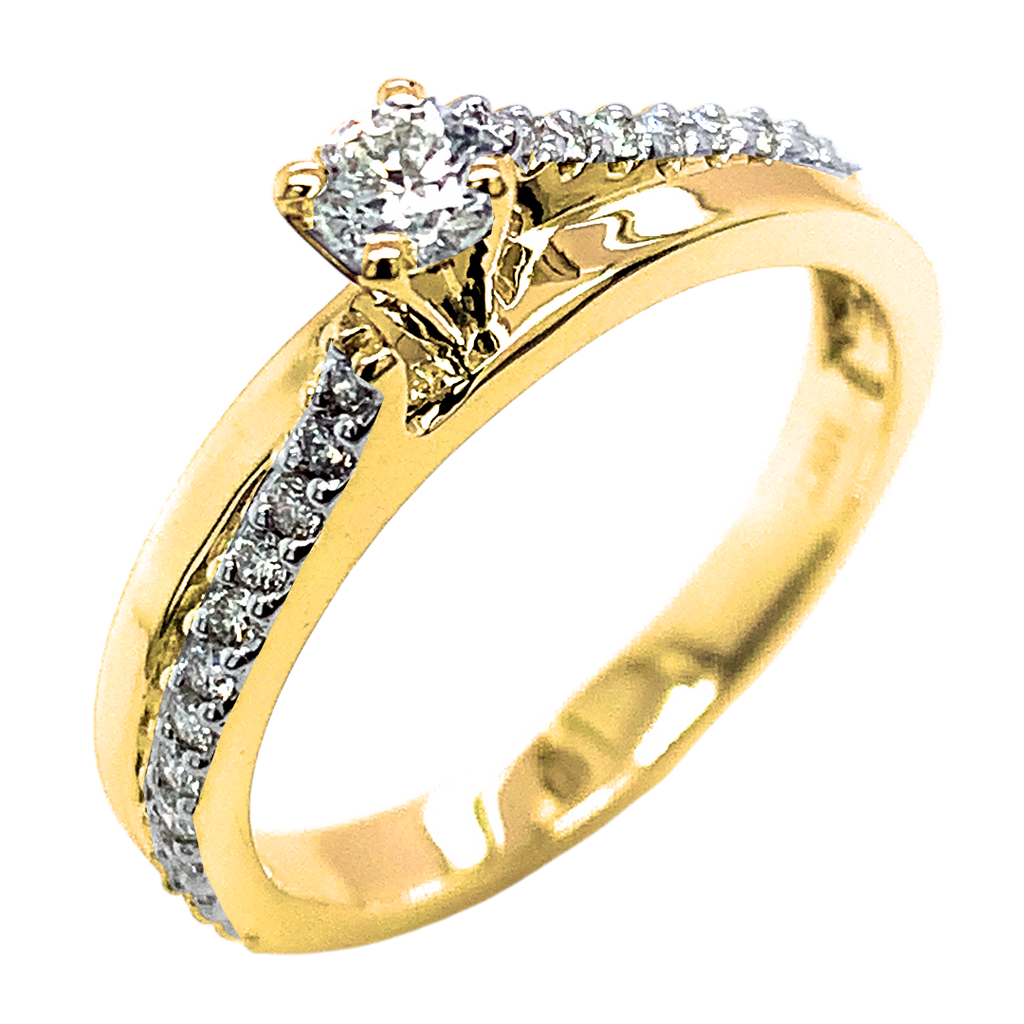 (SOFIA) Set de anillos de matrimonio con diamantes en oro amarillo 10kt.